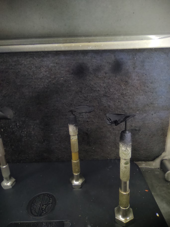 Comme à mon habitude désormais, je procède à la sous couche noire de l'ensemble. Je la passe à l'aérographe et j'utilise celle de la marque greenstuffworld que je dilue encore malgré sa relative liquidité.